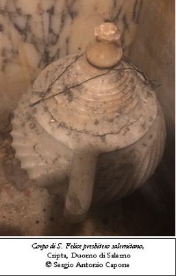 Meno solida l’ipotesi che il Felice salernitano vada considerato come “corpo santo”, un individuo sconosciuto ai cui resti, rinvenuti nell’altomedioevo, sarebbe stato assegnato, per motivi di prestigio della Chiesa locale, il titolo di martire.