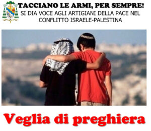 Lunedì 24 maggio alle ore 20.00 presso la parrocchia Sant’Eustachio Martire di Pastena-Salerno si tiene la veglia di preghiera presieduta dal vicario episcopale della carità, don Antonio Romano “Per favorire il dialogo tra Palestinesi e Israeliani affinché, attraverso la voce degli artigiani della pace, tacciano le armi per sempre”. &...