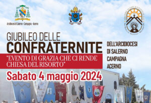 Sabato 4 maggio a Piano di Montoro si terrà il Giubileo delle Confraternite che avrà inizio alle ore 9.30 nel campo sportivo di Montoro e terminerà alle ore 12.00 con la Celebrazione Eucaristica presieduta dal Vicario Generale, don Alfonso Raimo. Di seguito il programma: 9.30 Accoglienza delle Confraternite presso il campo sportivo in ...