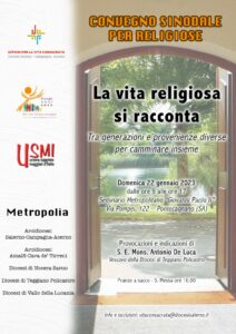Domenica 22 gennaio alle ore 9.00 presso il Seminario Metropolitano di Pontecagnano Faiano si tiene il Convegno Sinodale per Religiose dal tema “La vita religiosa si racconta – Tra generazioni e provenienze diverse per camminare insieme”. Organizzato dall’Ufficio per la Vita Consacrata e dalla segreteria Usmi diocesana per ...