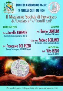 Venerdì 19 febbraio alle ore 19.30, l'Issr di Salerno propone un incontro di formazione on line dal titolo "Il magistero sociale di Francesco: da Laudato si a Fratelli tutti", rivolto a studenti, ex studenti, docenti IRC, operatori pastorali, in particolare catechisti e formatori...