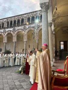 – Per il nostro Vescovo Andrea: lo Spirito Santo lo ricolmi dei suoi doni affinché sia per la nostra Chiesa diocesana di Salerno-Campagna-Acerno, immagine viva di Cristo, buon pastore. Preghiamo.