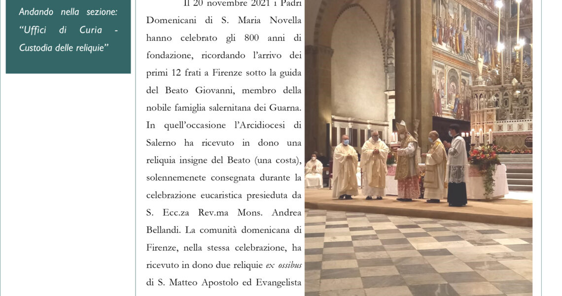 Il numero di febbraio 2022, è dedicato alle reliquie di Arechi II, al monastero di Santa Teresa in Solofra, a S. Feliciano diacono e martire, ai reliquiari a busto di Solofra e alle ricognizioni canoniche nell’urna di San Bonosio Vescovo. In ...