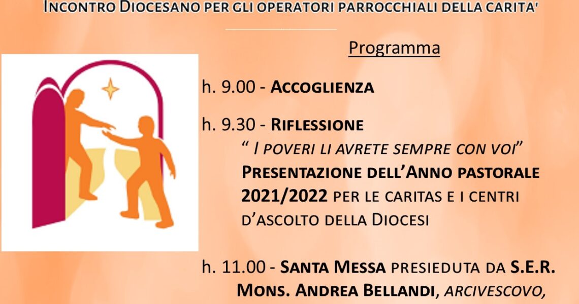 Sabato 27 novembre presso la Colonia S. Giuseppe le confraternite diocesane incontreranno S.E. Mons. Andrea Bellandi. È un’occasione per conoscere la potenzialità e lo slancio che le Confraternite possono apportare, per la crescita del laicato diocesano. Programma Ore 10:00 Accoglienza – ...