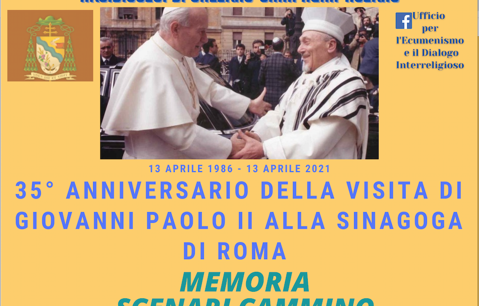 Martedì 27 aprile alle ore 19.00 si tiene un incontro sul 35° anniversario della visita di S. Giovanni Paolo II alla Sinagoga di Roma, organizzato dall’Ufficio per l’Ecumenismo e l Dialogo Interreligioso. Nel rispetto delle regole vigenti sul distanziamento l’incontro ...
