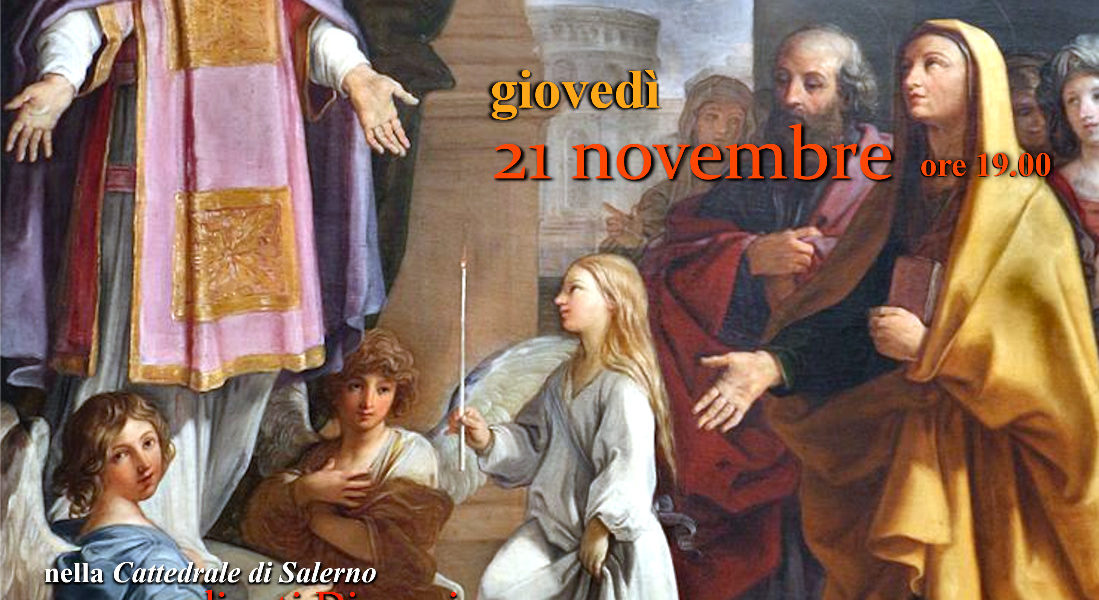 Giovedì 21 novembre 2019, memoria della Presentazione della Beata Vergine Maria, alle ore 19.00, nella Cattedrale Primaziale di Salerno, l’Arcivescovo Mons. Andrea Bellandi presiederà la Celebrazione Eucaristica e conferirà l’Ordinazione diaconale agli accoliti Giovanni Coppola, Walter De Stefano e Marco Scotto ...
