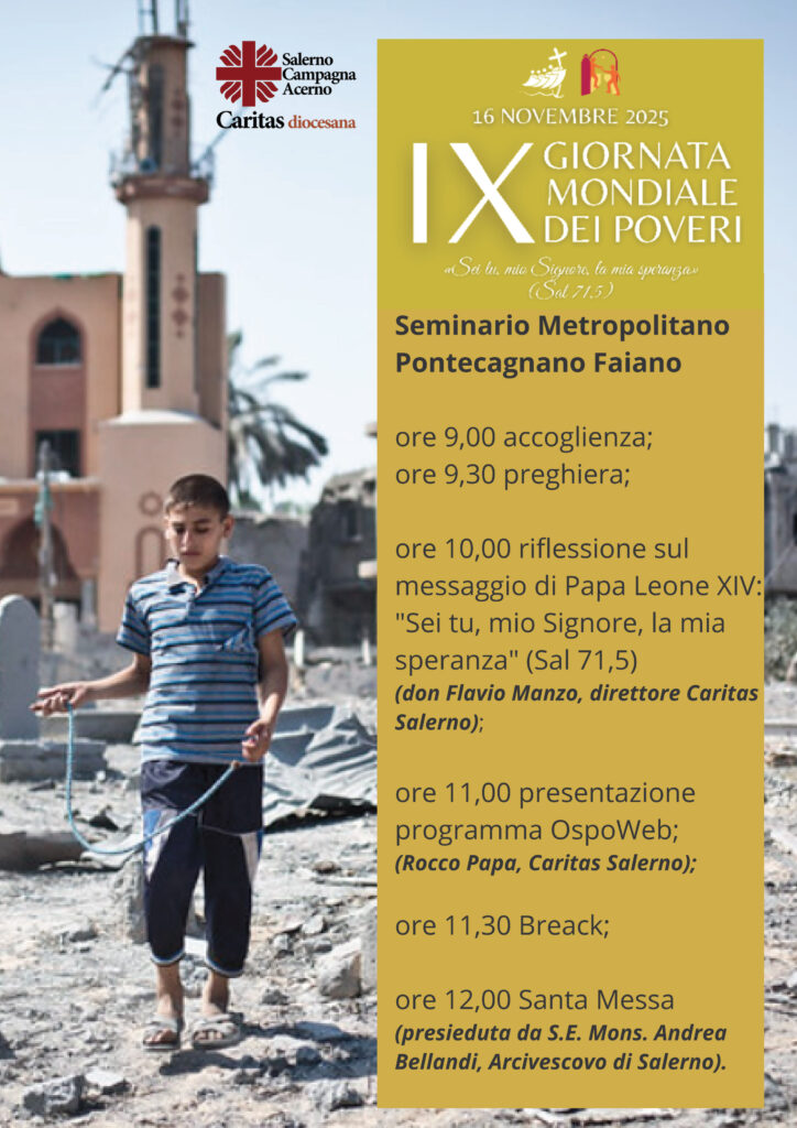 Domenica 16 novembre presso il Seminario Metropolitano di Pontecagnano Faiano, la Caritas Diocesana di Salerno-Campagna-Acerno, in comunione con il Santo Padre e con la Chiesa universale, invita sacerdoti, religiosi, volontari e fedeli a partecipare alla IX Giornata Mondiale dei Poveri. Nel ...