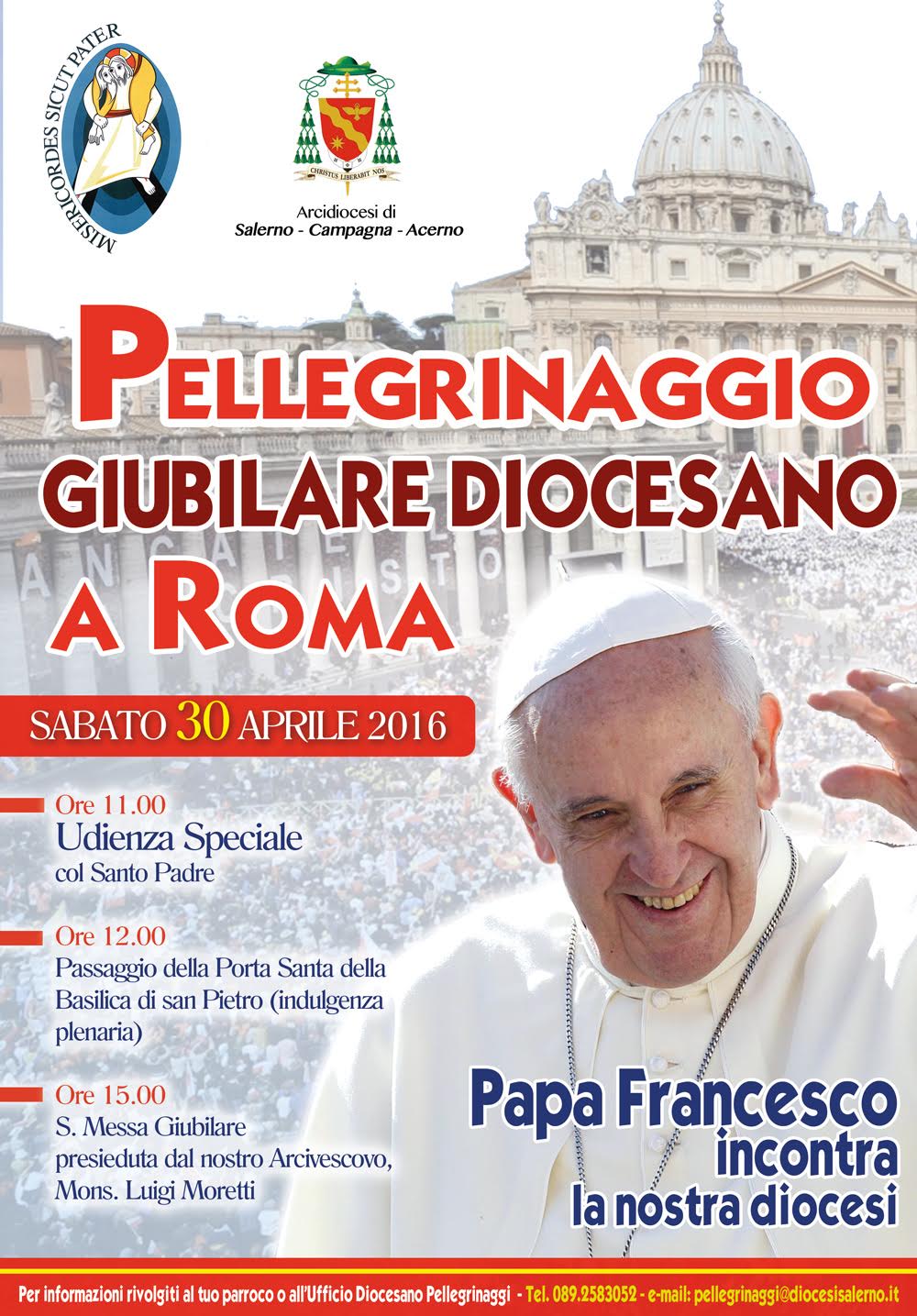 "Nella nostra Arcidiocesi avremo degli appuntamenti per poter celebrare insieme il Giubileo, tra questi, sabato 30 aprile 2016 alle ore 11.00 un'udienza speciale con Papa Francesco, dopo varcheremo in processione la Porta Santa della Basilica di San Pietro e concluderemo ...