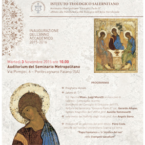 Martedì 3 novembre 2015, alle ore 10.00, presso l'Auditorium del Seminario Metropolitano Giovanni Paolo II in Pontecagnano Faiano (Sa) si terrà l'inaugurazione dell'anno accademico 2015/16 dell'Istituto Teologico Salernitano.
