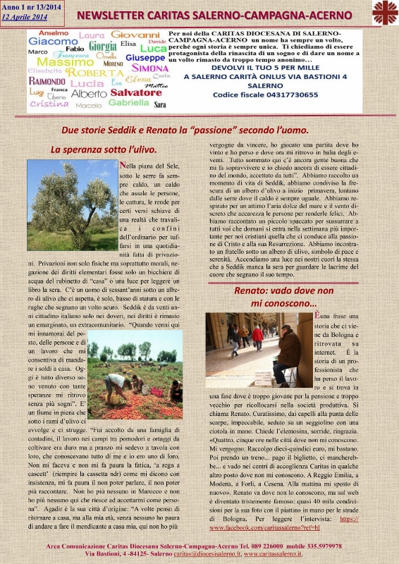 Due storie Seddik e Renato la “passione” secondo l’uomo. Allegati: NEWS LETTER 13.pdf