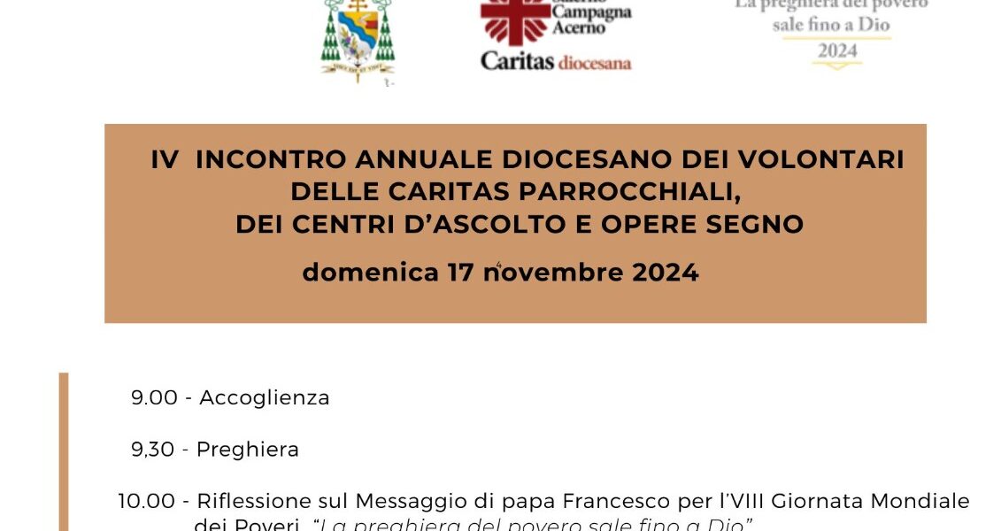 Domenica 17 novembre, alle ore 9.00, si terrà un incontro che prevede una riflessione sul messaggio di Papa Francesco “La preghiera del povero sale fino a Dio” tenuta dal direttore della Caritas di Salerno Campagna Acerno, don Flavio Manzo, in ...