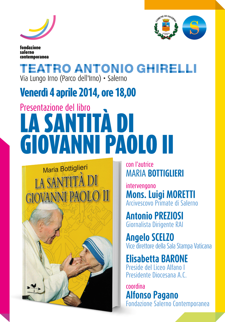 L\’Arcivescovo parteciperà alla presentazione del libro di Maria Bottiglieri dal titolo “La Santità di Giovanni Paolo II”, a Salerno presso il Teatro Ghirelli…