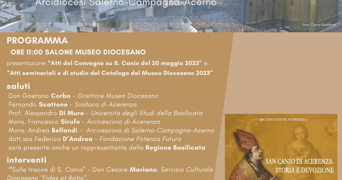 Al termine del convegno storico-religioso tenuto sia ad Acerenza il 20 maggio 2023 su San Canio e le sue reliquie, con un’attenzione particolare al rapporto tra Salerno ed Acerenza nell’XI secolo, in occasione della dedicazione della cattedrale di Acerenza il ...