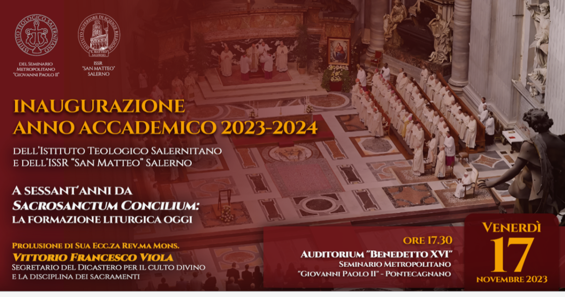Venerdì 17 novembrealle ore 17.30 si terrà l’inaugurazione dell’anno accademico 2023/2024 dell’Istituto di Scienze Religiose “San Matteo” e dell’Istituto teologico Salernitano (Seminario) presso l’auditorium “Benedetto XVI” del Seminario Metropolitano “Giovanni Paolo II”. Prolusione Accademica di S.E. Mons. Vittorio Francesco Viola, ...