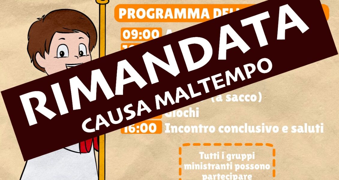 APPUNTAMENTO RIMANDATO Martedì 25 aprile, dalle ore 9.00, presso il Seminario Metropolitano “Giovanni Paolo II” di Pontecagnano Faiano, si tiene la Giornata del Ministrante. Il tema della giornata prende spunto da ciò a cui un ministrante dovrebbe ...