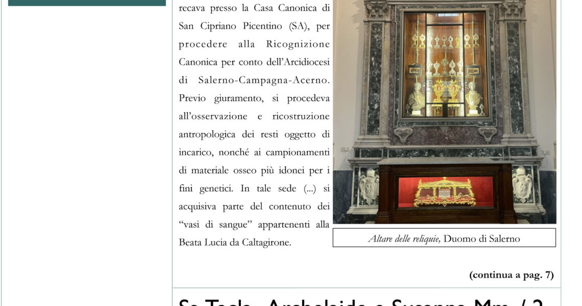 L’edizione QSCRAS numero 3 del mese di marzo 2023, apre la sua prima pagina, con la seconda edizione delle reliquie della beata Lucia da Caltagirone e delle reliquie delle Sante Tecla, Archelaide e Susanna Mm. presenti nella rettori di San ...