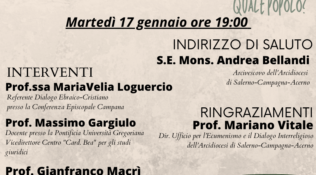 Martedì 17 gennaio alle ore 19.00 l’Ufficio per l’Ecumenismo e il Dialogo interreligioso dell’Arcidiocesi di Salerno-Campagna-Acerno organizza un incontro sulla piattaforma Zoom sul tema scelto che, come scrivono i Vescovi nel loro messaggio, è «un annuncio di consolazione per il ...