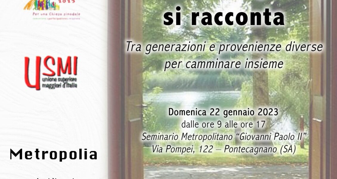 Domenica 22 gennaio alle ore 9.00 presso il Seminario Metropolitano di Pontecagnano Faiano si tiene il Convegno Sinodale per Religiose dal tema “La vita religiosa si racconta – Tra generazioni e provenienze diverse per camminare insieme”. Organizzato dall’Ufficio per la Vita ...