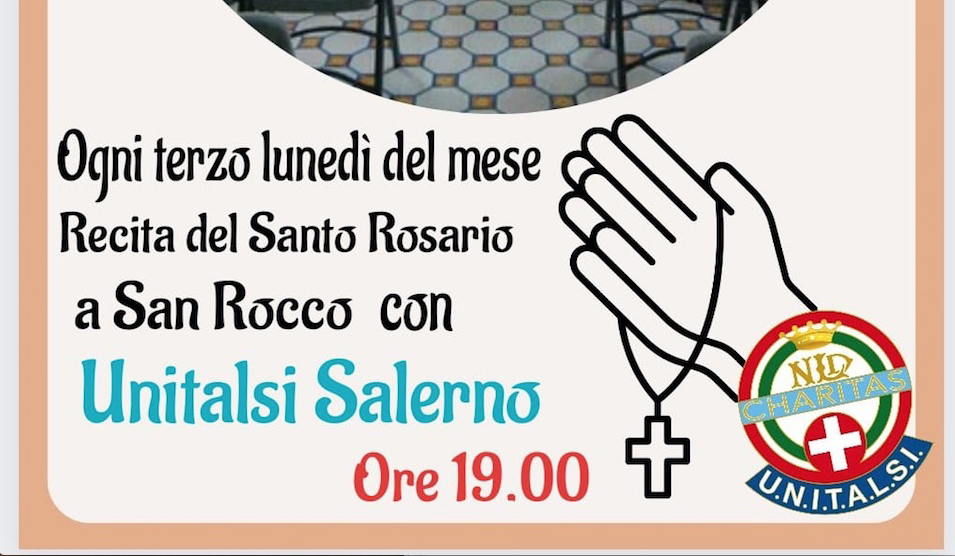 Ogni terzo lunedì del mese alle ore 19.00, l’Unitalsi Salerno organizza la recita del Santo Rosario presso la Chiesa di San Rocco in via Mercanti, con la guida dell’assistente spirituale Don Antonio Manganella. Un momento di preghiera aperto a tutti ...