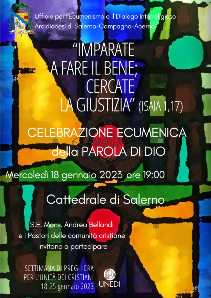 In occasione della Settimana di Preghiera per l'Unità dei Cristiani, mercoledì 18 gennaio alle ore 19.00 presso la Cattedrale di Salerno si terrà la celebrazione ecumenica della Parola di Dio presieduta da S.E. Mons. Andrea Bellandi e dai pastori delle ...