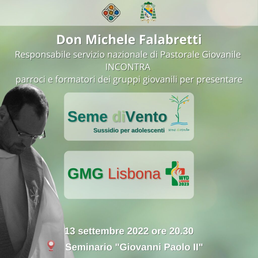 Martedì 13 settembre alle ore 20.30 presso il Seminario Metropolitano “Giovanni Paolo II” di Pontecagnano Faiano, la Pastorale Giovanile propone ai parroci e ai formatori dei gruppi giovanili un incontro tenuto da don Michele Falabretti, responsabile nazionale di Pastorale Giovanile, il quale ...