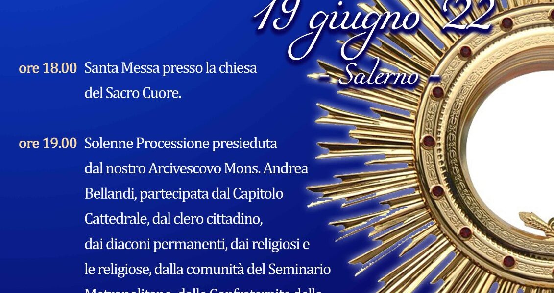 Domenica 19 giugno alle ore 19.00, in occasione della solennità del Corpus Domini, dopo la celebrazione eucaristica presso la parrocchia del Sacro Cuore delle ore 18.00, si tiene la solenne processione presieduta dal nostro Arcivescovo, S.E. Mons. Andrea Bellandi, partecipata dal ...