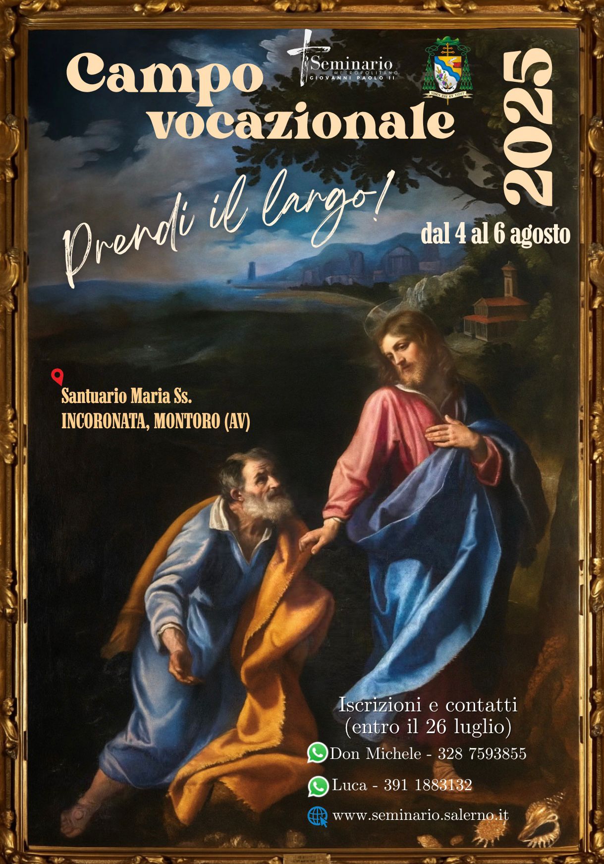 Dal 4 al 6 agosto il Seminario Metropolitano “Giovanni Paolo II” organizza il Campo Vocazionale dal tema “Prendi il largo”, si terrà presso il Santuario Maria Ss. Incoronata di Montoro (AV). Questa iniziativa è rivolta ai giovani e ai ragazzi dai 14 ai 30 anni.