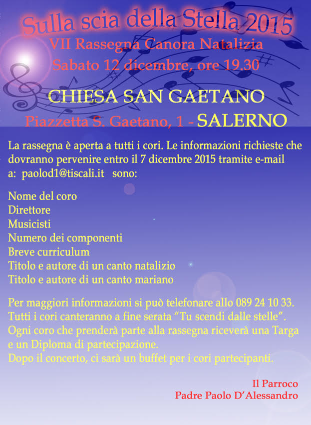 VII Rassegna Natalizia dei Cori: “Sulla Scia della stella 2015” La rassegna è aperta a tutti i cori. Per informazioni via mail paolod1@tiscali.it