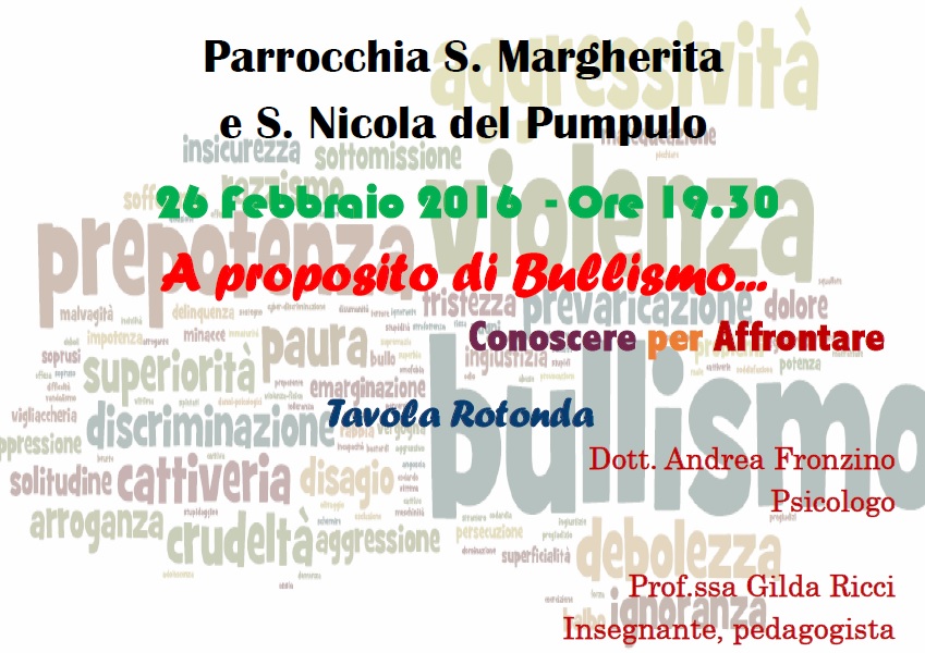 Si svolgerà venerdì 26 febbraio presso la parrocchia di Santa Margherita e S Nicola in Pumpulo di Salerno, sarà un evento interessante per tutti, particolarmente per i genitori, i nonni, i giovani e giovanissimi, educatori e insegnanti. Gli esperti saranno ...