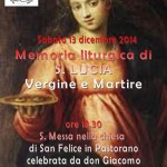 Sabato 13 dicembre ore 18.30 S. Messa nella chiesa di san Felice in Pastorano in memoria di S. Lucia