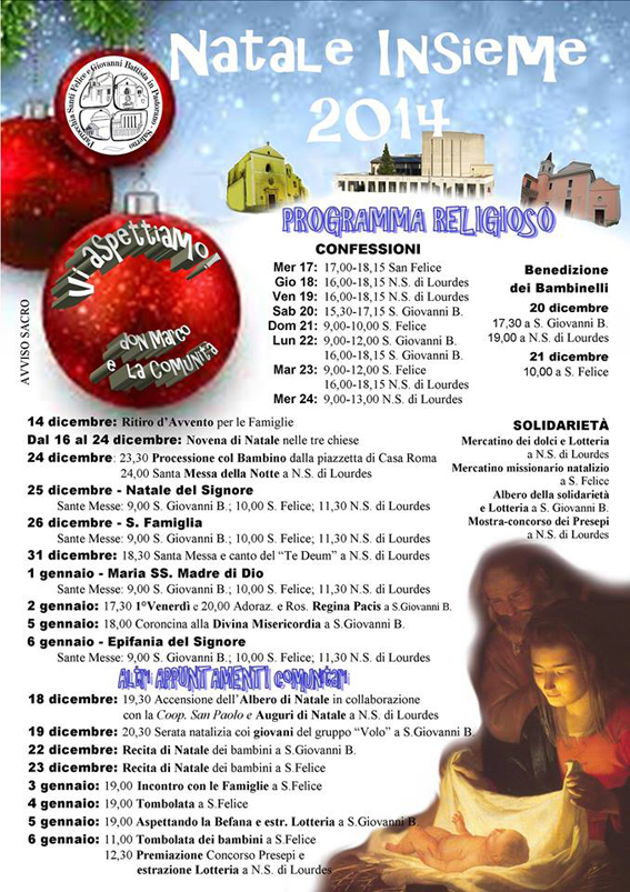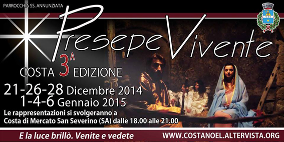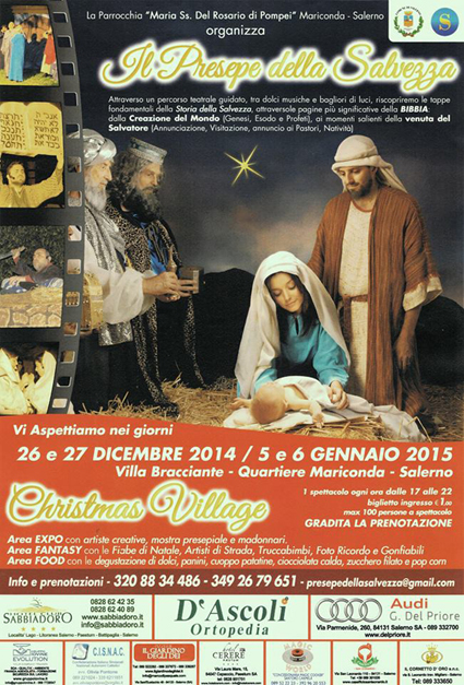 Nei giorni 26 e 27 Dicembre 2014 e 5 e 6 Gennaio 2015 la parrocchia “Maria Ss. del Rosario di Pompei” organizza la II edizione del presepe vivente denominato “Il Presepe della Salvezza”