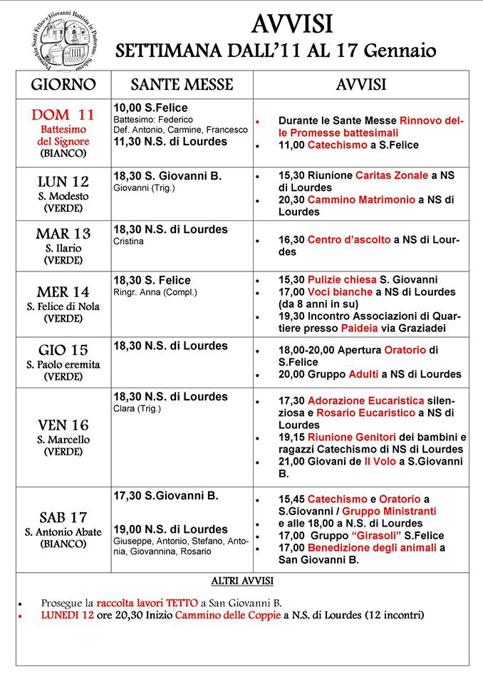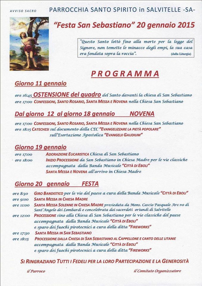 Programma per la festa di S. Sebastiano, 20 gennaio 2015