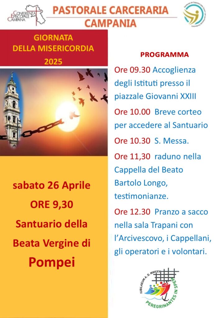 Sabato 26 aprile alle ore 9.30 presso il Santuario della Vergine Maria di Pompei si terrà la Giornata della Misericordia organizzata dalla Pastorale Carceraria Campana.