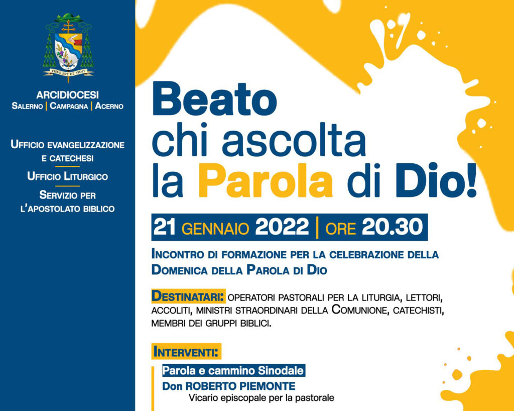 Venerdì 21 gennaio alle ore 20.30 sulla piattaforma Google Meet, si tiene un incontro di formazione per la celebrazione della Domenica della Parola di Dio organizzato dall’Ufficio Evangelizzazione e Catechesi, dall’Ufficio Liturgico e dal Servizio per l’Apostolato Biblico. Interverranno Don ...