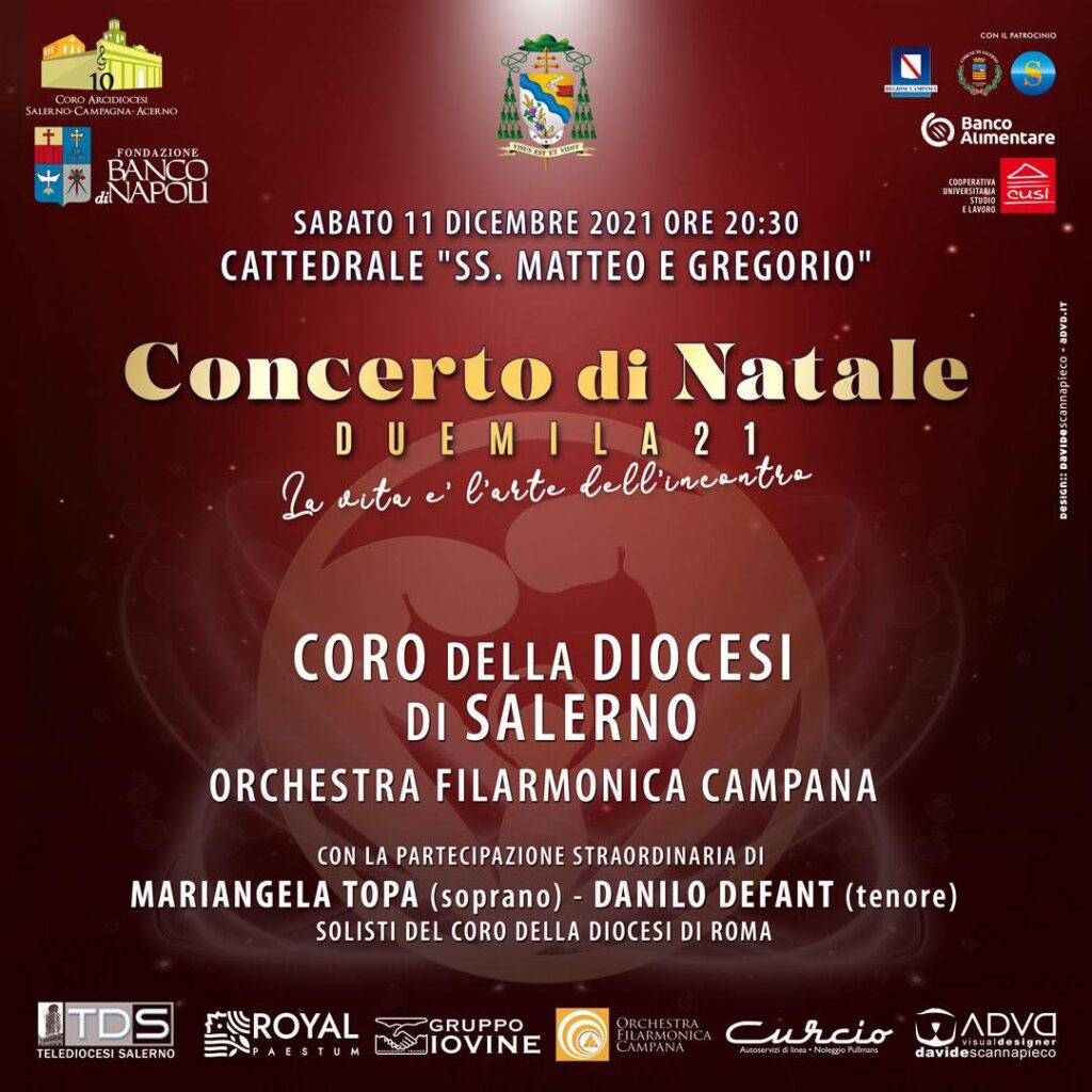 Sabato 11 Dicembre, alle ore 20.30 presso la Cattedrale dei “SS. Matteo e Gregorio” di Salerno, si tiene il consueto Concerto di Natale. La suggestiva cornice accoglierà il Coro della Diocesi di Salerno, accompagnato dall’Orchestra Filarmonica Campana e dai ...