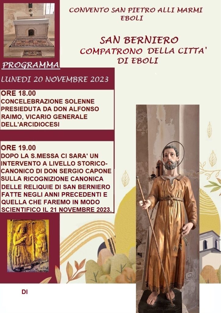 Celebrazioni liturgiche del 20 novembre in onore di San Berniero con un incontro di approfondimento sulle ricognizioni canoniche nella Chiesa in vista di quella scientifica che sarà fatta sulle ossa del santo il 21 novembre 2023.