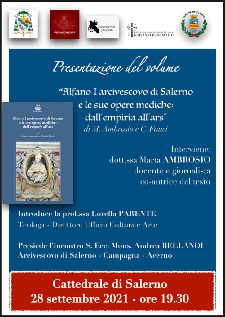 Martedì 28 settembre alle ore 19.30 presso la Cattedrale di Salerno si tiene la presentazione del volume “Alfano I arcivescovo di Salerno e le sue opere mediche: dall’empiria all’ars” di Marta Ambrosio e Claudio Fauci. L’incontro è presieduto da S.E. ...
