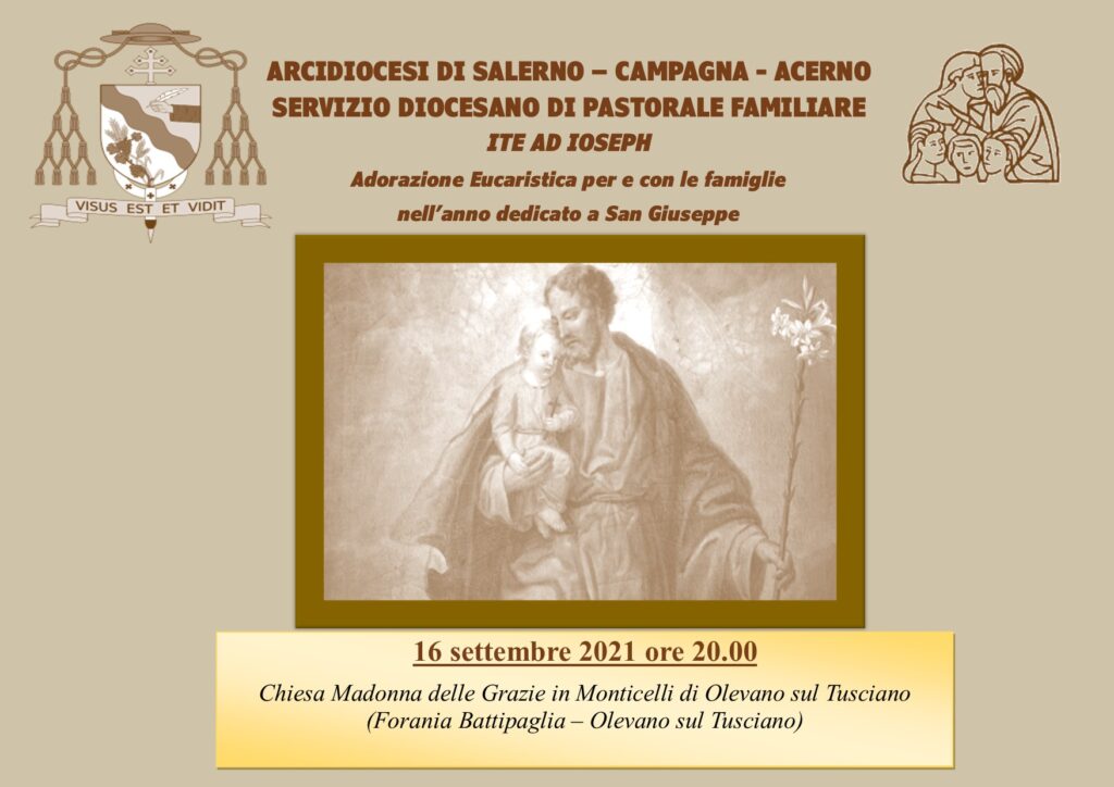 Lettera e schema dell’adorazione eucaristica di giovedì 16 settembre alle ore 20.00, presso la parrocchia Madonna delle Grazie in Monticelli di Olevano sul Tusciano, in occasione dell’anno speciale dedicato da Papa Francesco a San Giuseppe Sposo di Maria, Padre di ...