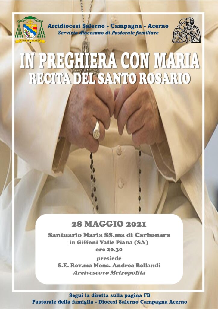 A chiusura del mese mariano, presso il Santuario di Maria SS.ma di Carbonara in Giffoni Valle Piana (SA) venerdì 28 maggio 2021 alle ore 20.00, S.E. Mons. Andrea Bellandi guiderà la recita del Santo Rosario, animato dalle famiglie della comunità e ...
