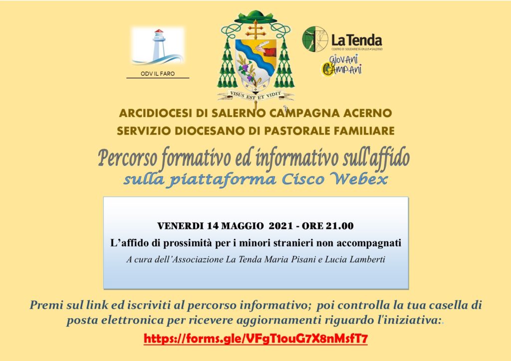 Venerdì 14 maggio, alle ore 21.00, si tiene l'ultimo incontro del percorso formativo e di informazione sull'affido, dal titolo: L’affido di prossimità per i minori stranieri non accompagnati; a cura dell’Associazione La Tenda Maria Pisani e Lucia Lamberti
