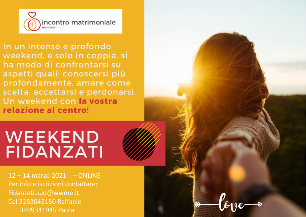 Il Servizio Diocesano di Pastorale Familiare invita a partecipare a un fine settimana di formazione per fidanzati che si tiene da venerdì 12 a domenica 14 marzo online. Invito per i Sacerdoti della Diocesi Per informazioni ...