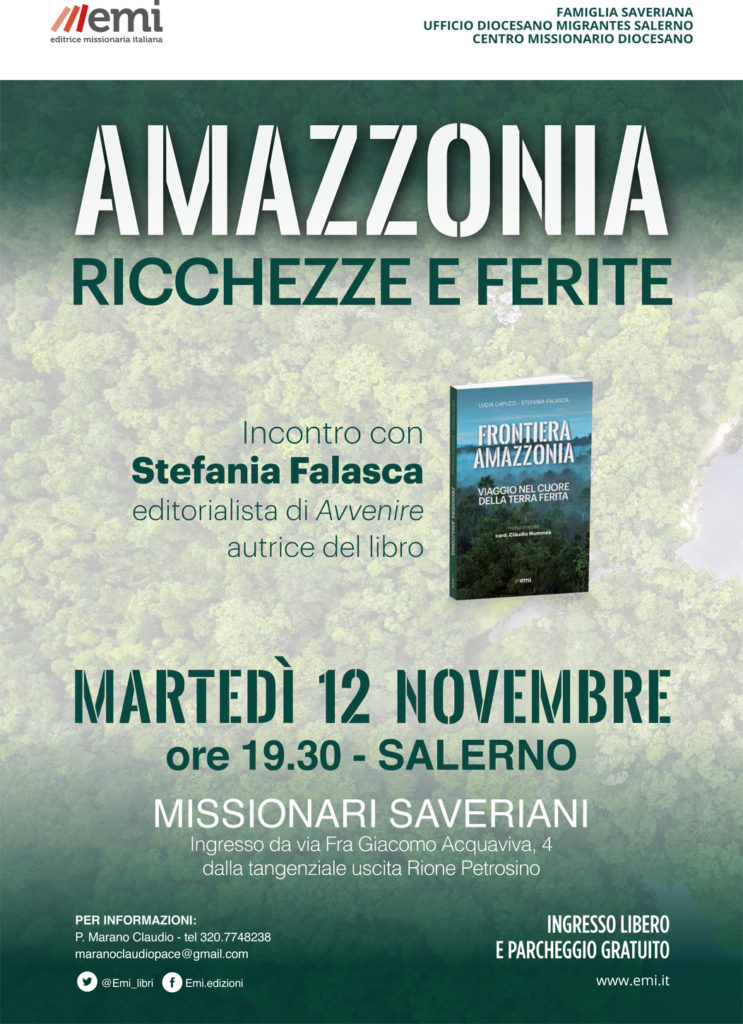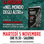 Corrado Dalmonego, missionario della Consolata, sarà dai Missionari Saveriani a Salerno il 5 novembre e a Eboli, nell’auditorium S. Bartolomeo il 6 novembre, alle ore 19.30. È stato organizzato dalla Famiglia Saveriana, dalla Parrocchia S. Bartolomeo, dal Centro Missionario Diocesano, ...