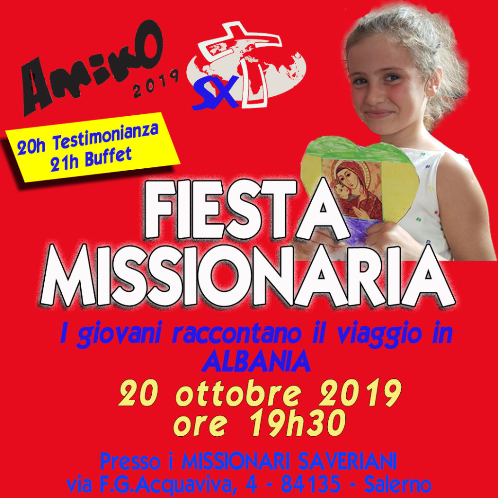 Domenica 20 ottobre alle ore 19.30, presso la Casa dei Missionari Saveriani di via F.G. Acquaviva 4, si terrà la serata: Fiesta Missionaria in cui i giovani del gruppo ‘Missione’ presenteranno e racconteranno il loro viaggio in Albania. In programma: ...