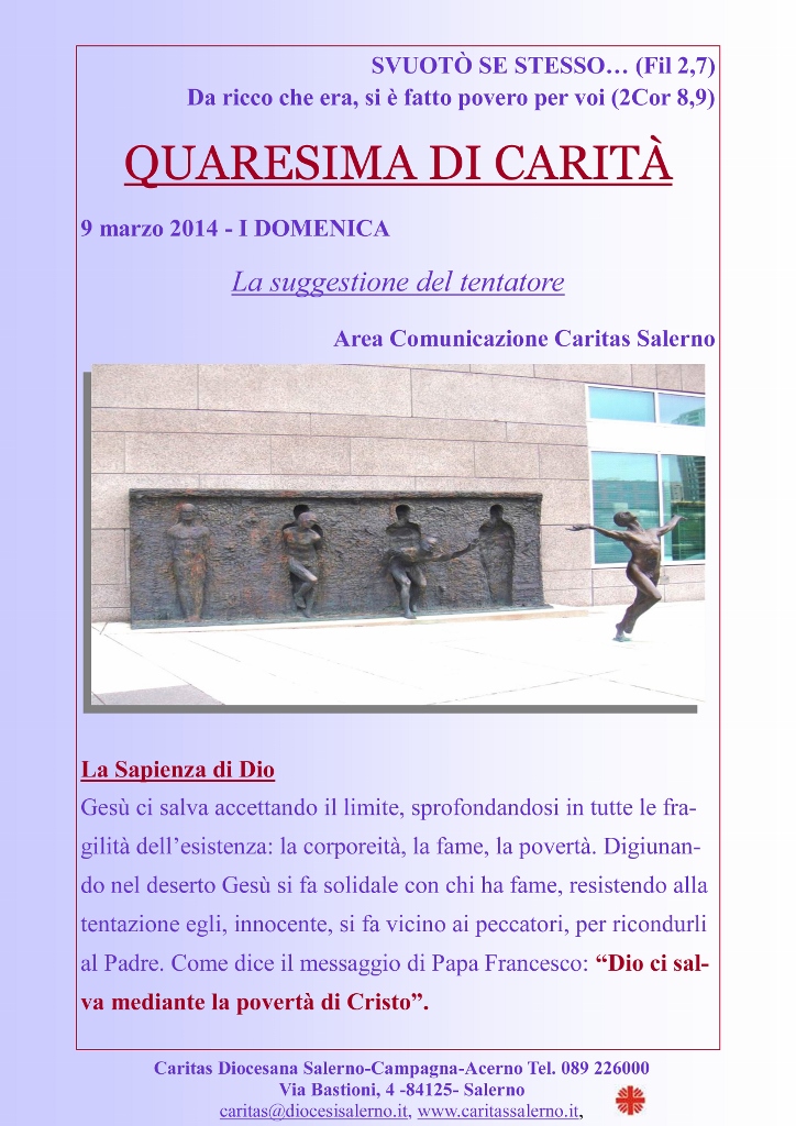 Quante volte risuona alle nostre orecchie la parola povero, ma soprattutto con ancora più forza che Egli si è svuotato per rendersi uguale a me. Allegati: quaresima di carità 2014 prima domenica.pdf