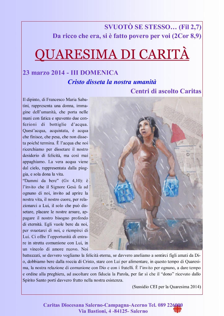 Stare con Lui per alimentare, in questo tempo di Quaresima, la nostra relazione di comunione con Dio e con i fratelli. Allegati: quaresima di carità 2014 terzadomenica.pdf