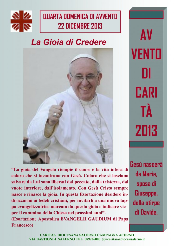 Il Comune di Salerno (Assessorato Politiche Sociali) e la Caritas Diocesana invitano la città di Salerno presso il complesso monumentale di Santa Sofia Lunedì 6 Gennaio ore 19.30 Allegati: CS Epifania vera Manifestazione di solidarietà.pdf