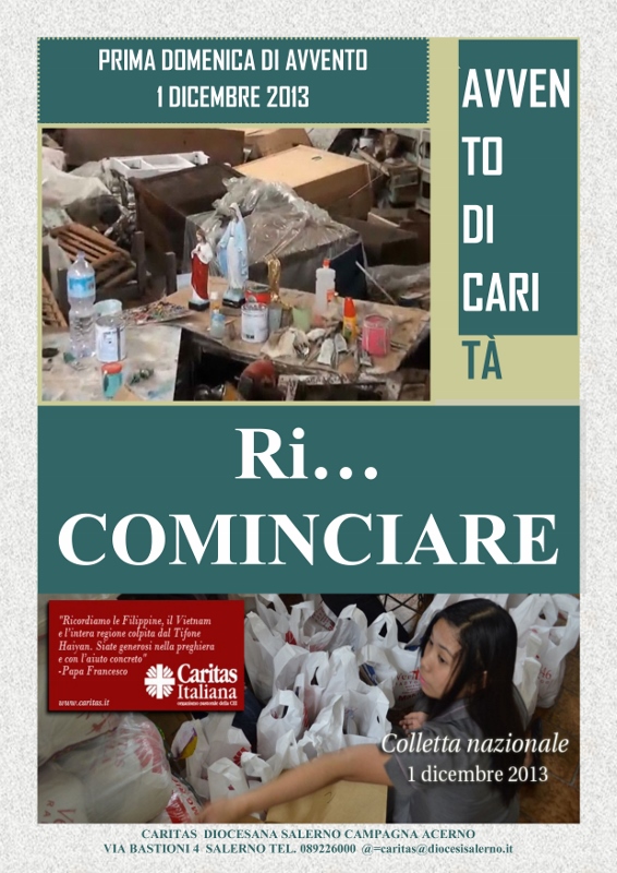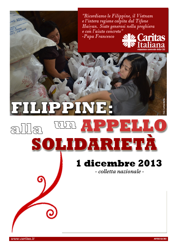 Il 1 dicembre 2013, prima Domenica di Avvento, in tutte le chiese d’Italia si terrà una colletta nazionale indetta dalla Presidenza della Conferenza Episcopale Italiana a sostegno delle popolazioni colpite.