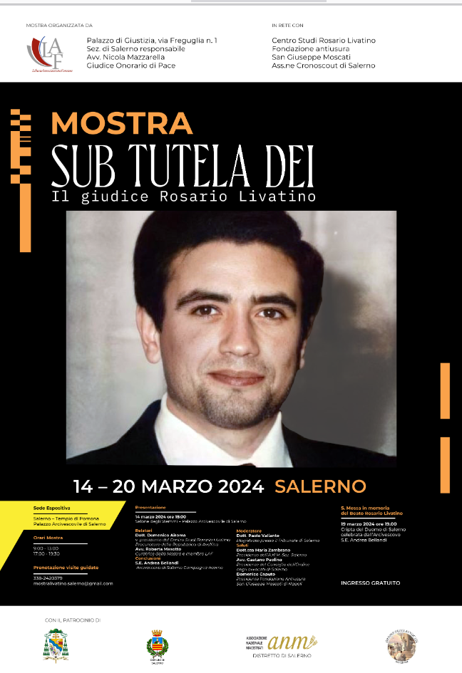 L’inaugurazione dell’evento e la Santa Messa celebrata dall’Arcivescovo S.E. Monsignor Bellandi taglio del nastro, il 14 marzo 2024, alle ore 18, presso il Salone degli Stemmi del Palazzo Arcivescovile di Salerno
