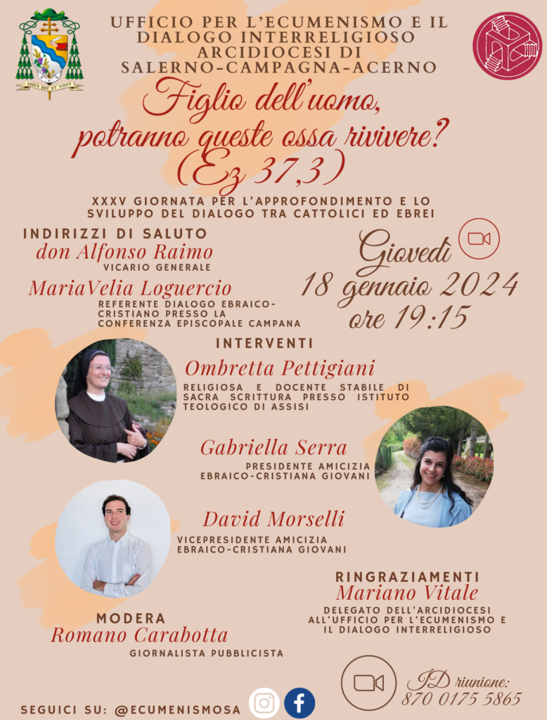 Giovedì 18 gennaio alle ore 19.15 l’Ufficio diocesano per l’Ecumenismo e il dialogo iterreligioso ha organizzato un incontro online in occasione della XXXV Giornata per l’approfondimento e lo sviluppo tra cattolici ed ebrei. Di seguito il messaggio dell’Ufficio diocesano a ...