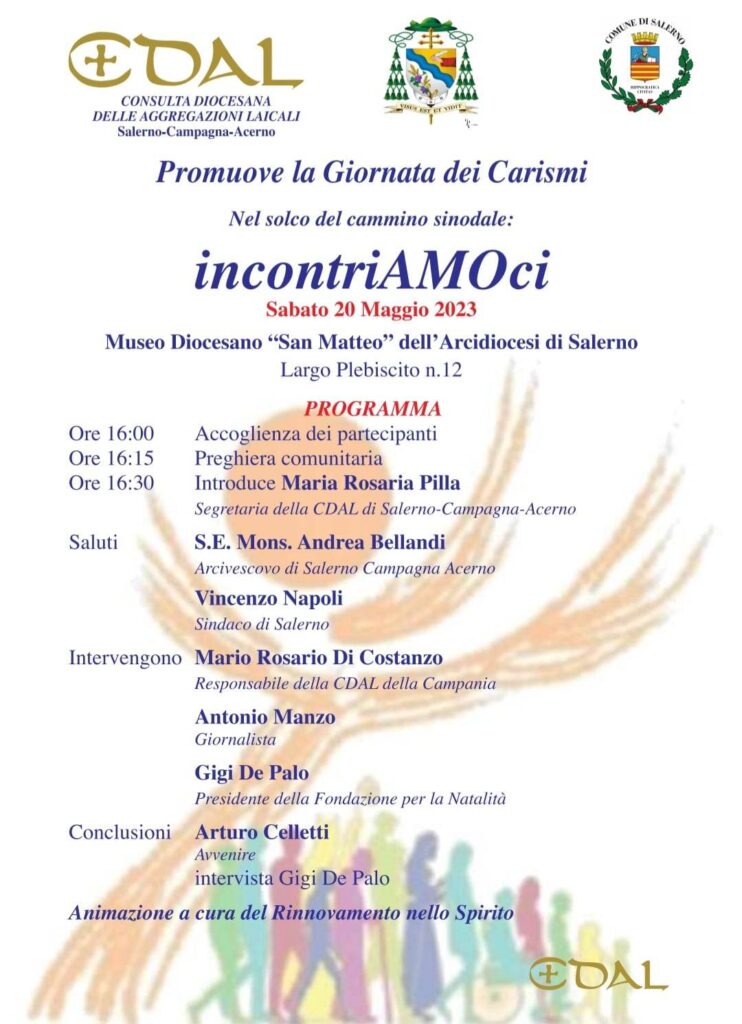 "Nel solco del cammino sinodale: incontriAMOci": è questo l’emblematico titolo dell’incontro che, promosso ed organizzato dalla Consulta delle Aggregazioni Laicali della Arcidiocesi di Salerno-Campagna-Acerno, si terrà il 20 maggio, alle ore 16, presso l’atrio del Museo Diocesano “San Matteo” di ...